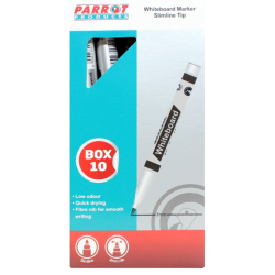 Parrot Whiteboard Markers (Box of 10 - Slimline Tip) (Slimline Tip)