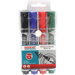 Parrot Whiteboard Markers (4 Markers - Bullet Tip - Pouch) (Bullet Tip)