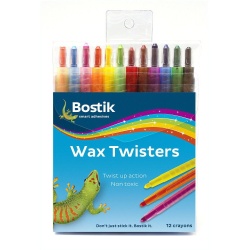 BOSTIK Wax Twisters are wax crayons, but even better. They are protected by a durable plastic tube with a twist-up mechanism to prevent breakage and waste. The bright colours will bring life to any artwork. Ideal for school projects and home crafts.