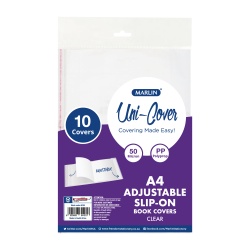 Medium Duty Plastic. 10 Adjustable Covers. Clear Plastic. Suitable for all A4 books. No cutting required. 50micron