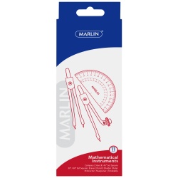 Marlin Math Set Metal 11 Piece is the perfect maths companion with metal pencil case, compass, stencil, 45° set square, 30°/60° set square, eraser, pencil, dividers, ruler, protractor, sharpener and timetable.